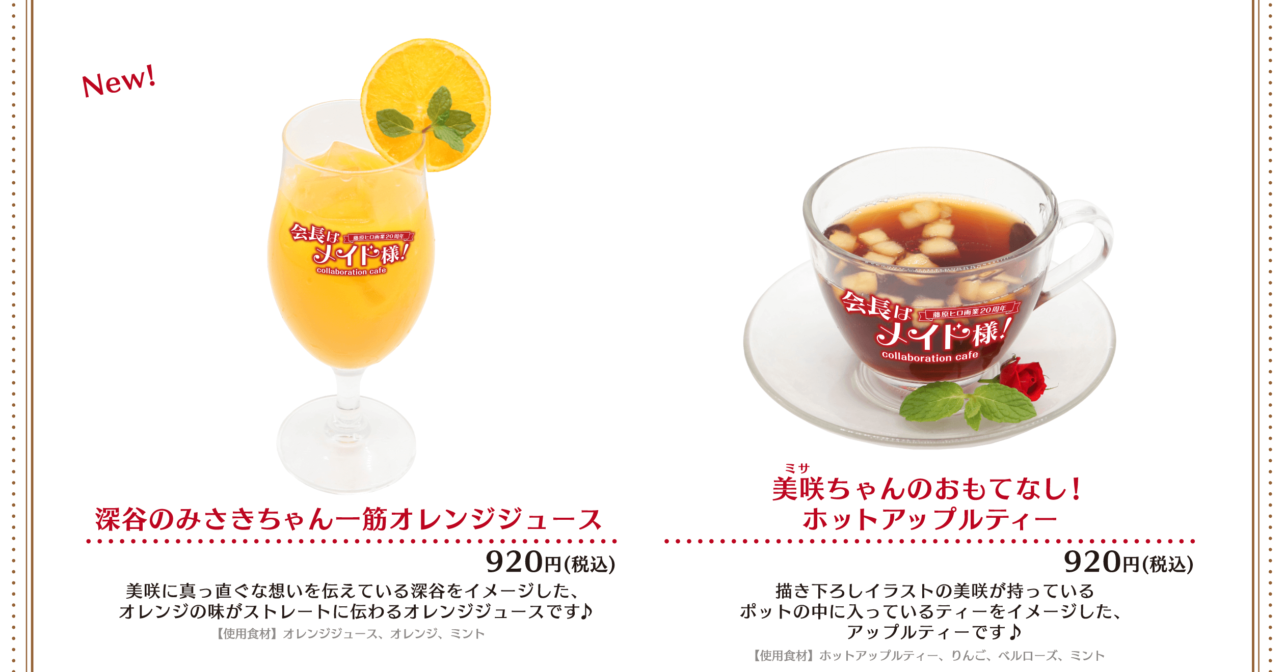 ※画像はイメージです。※メニューは制作途中のため、変更になる可能性があります。※価格は予価のため、変更になる可能性があります。※材料手配の都合上、メニューが品切れる場合がございます。※ドリンクは全てノンアルコールです。